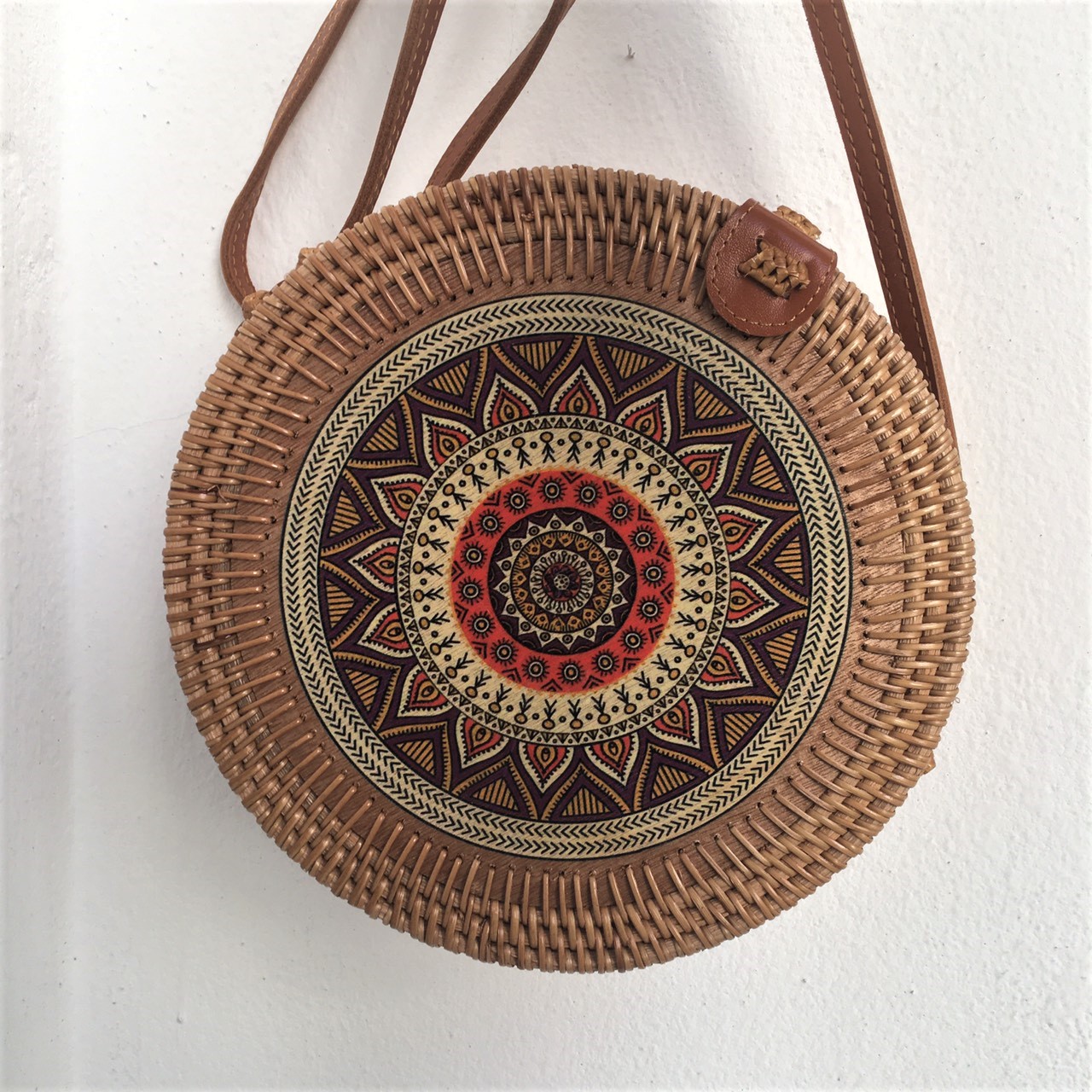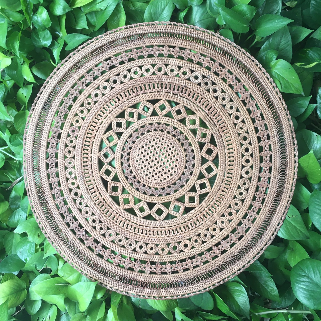 Đĩa tròn đan mây họa tiết dân tộc
